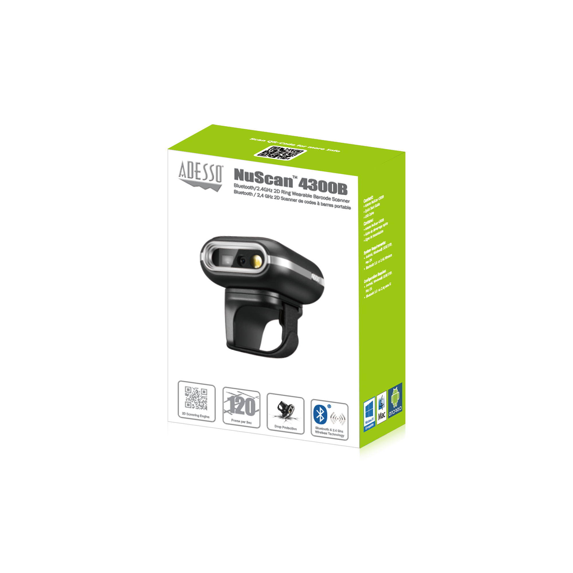 - Adesso NuScan 4300b – Bluetooth 2D Ring Wearable Barcode Scanner
