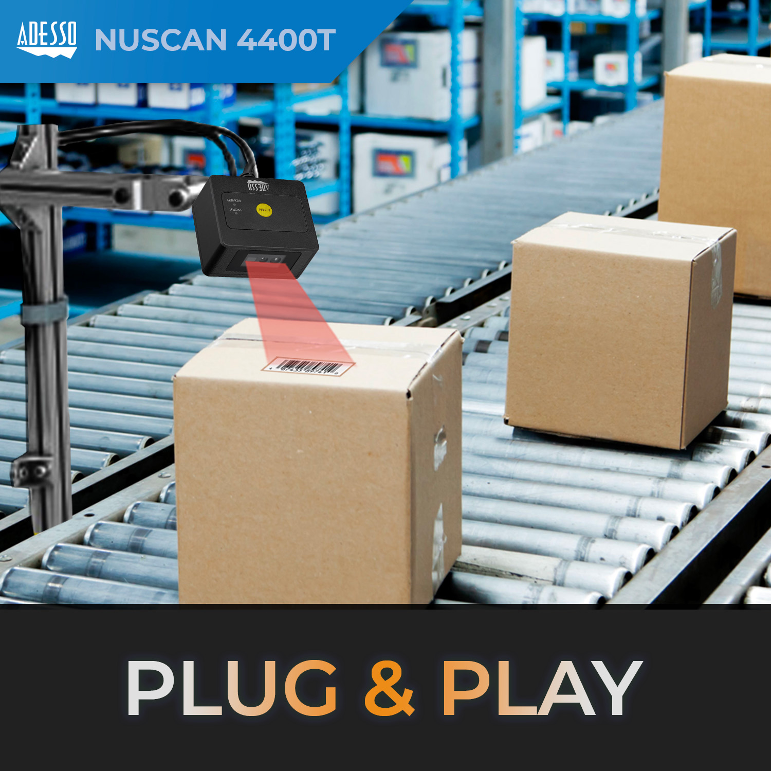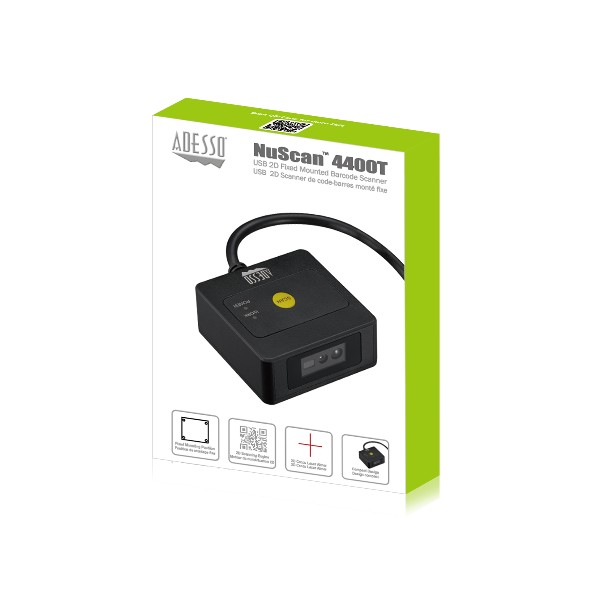 - Adesso NuScan 4400T – USB 2D Fixed Mounted Barcode Scanner