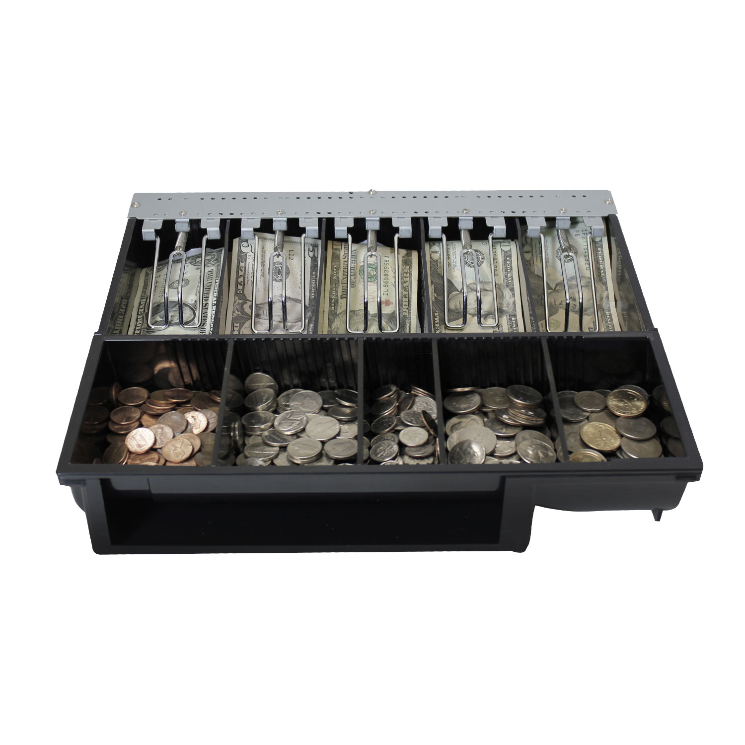The removable case comes with bill and coin dividers which can be easily installed for customized storage space options.