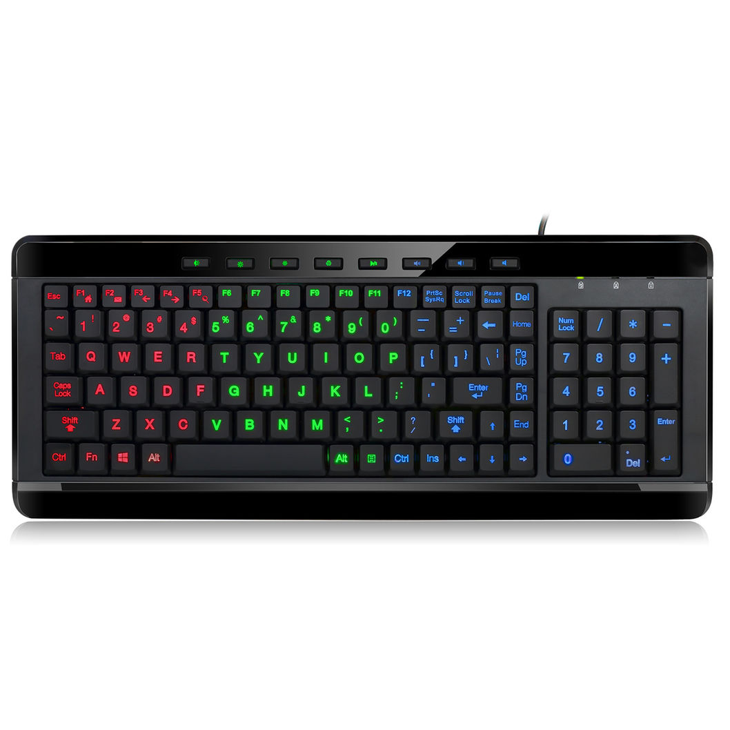 3 color Illuminated 2X large Print compact Keyboard
