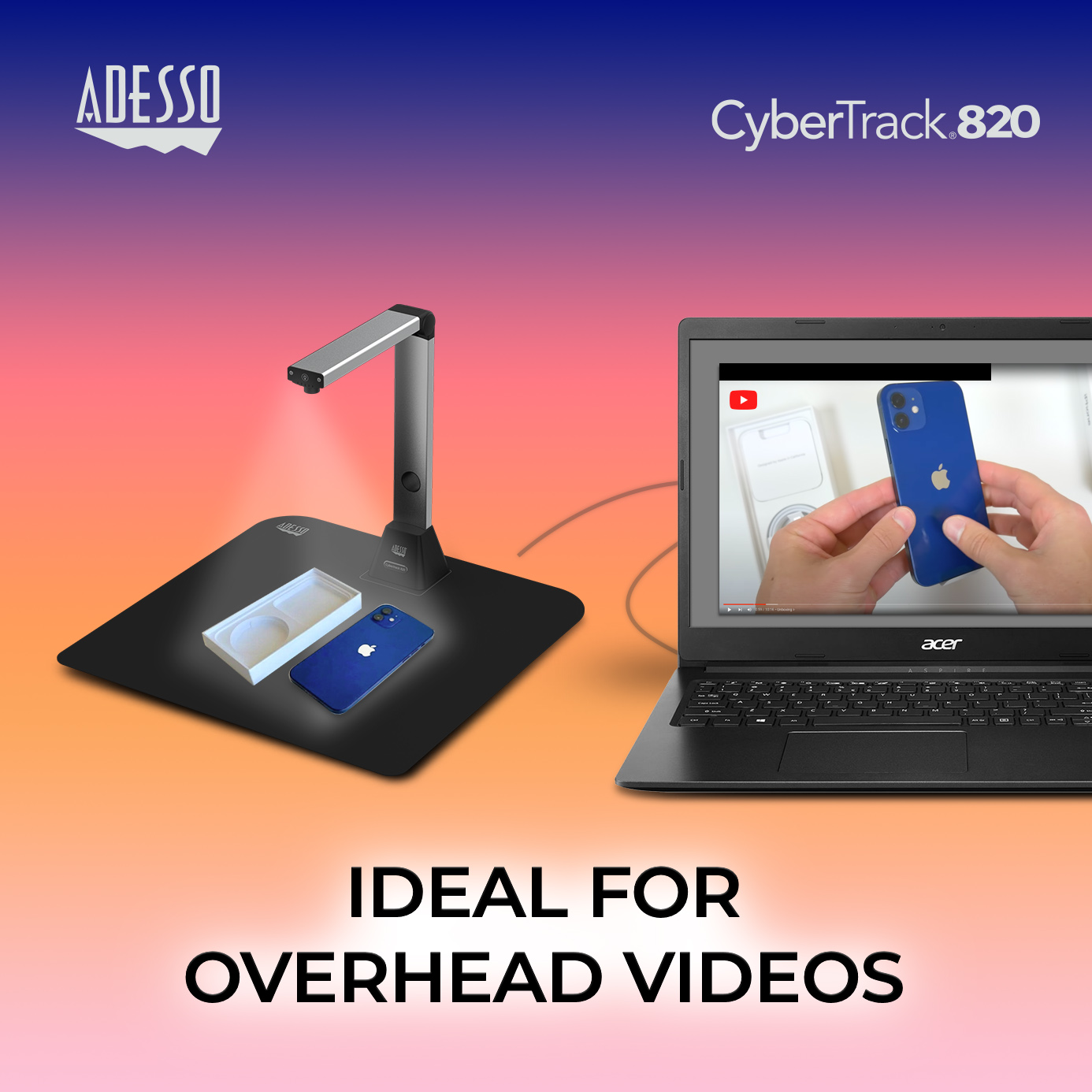 The Cybertrack 820 is a powerful document camera that is capable of using it’s fixed-focus feature to capture real-time images of 3D objects, magazines, books, documents, pictures, and business cards and present them through a monitor or projector. Combined with our software, it allows the user to control more features such as annotation, zoom in, zoom out, video format, image le format, Doc le format, shooting area, and even scanning of single pages or multiple pages.
