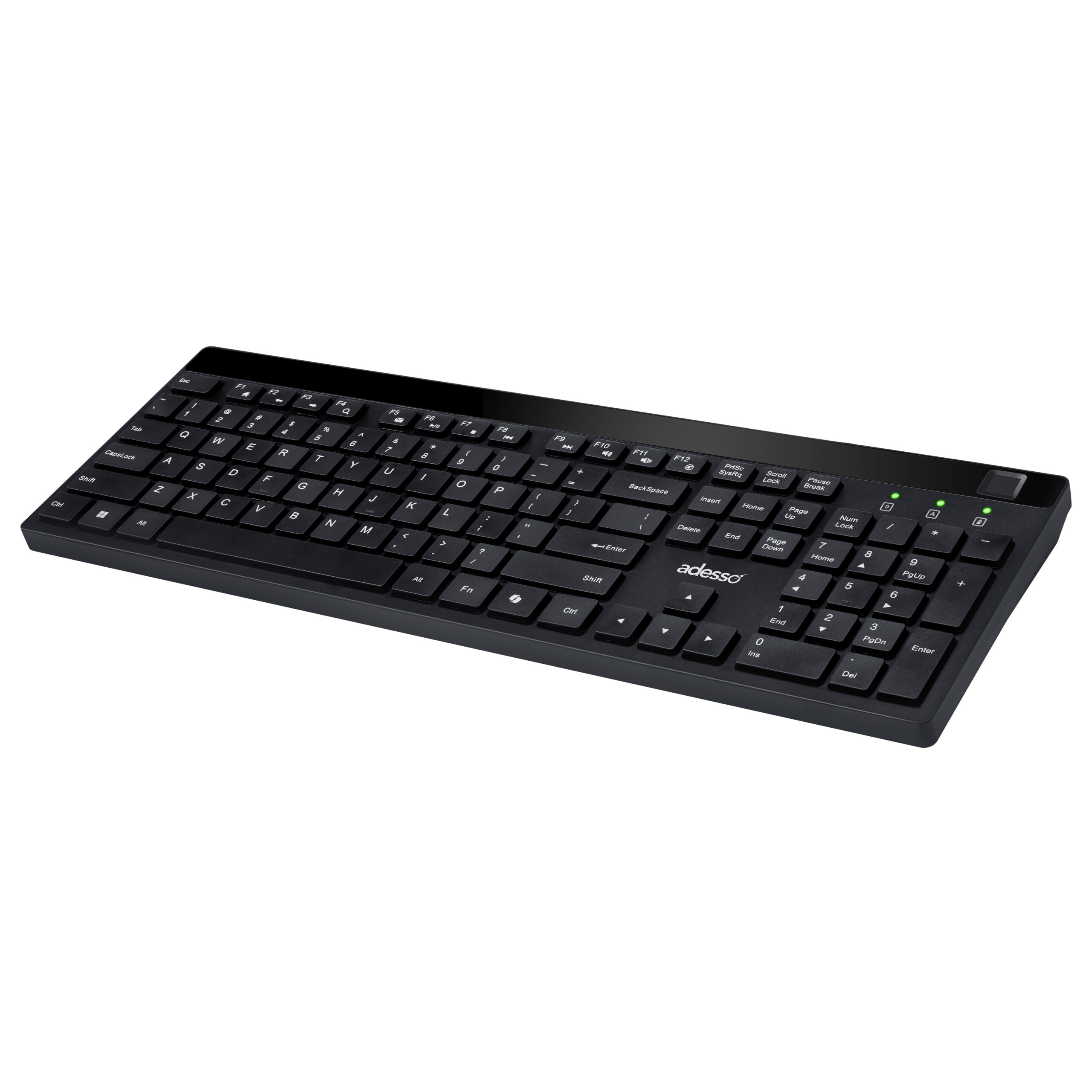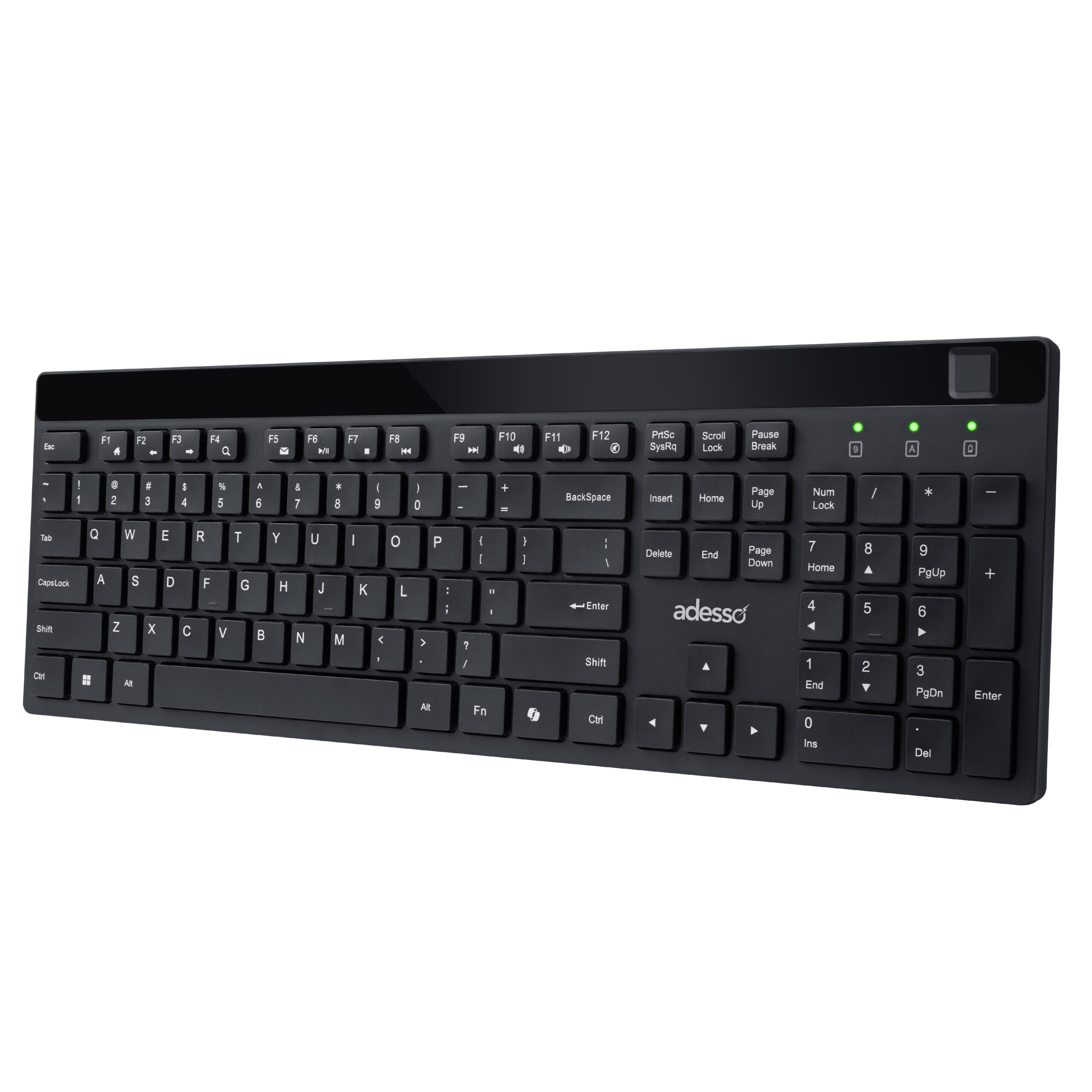 The Adesso WKB-1400FB is a sleek wireless low-profile keyboard equipped with a built-in fingerprint reader for enhanced security. Its compact design offers a comfortable typing experience while enabling fast, secure biometric authentication. Perfect for modern workplaces and users prioritizing convenience and data protection.