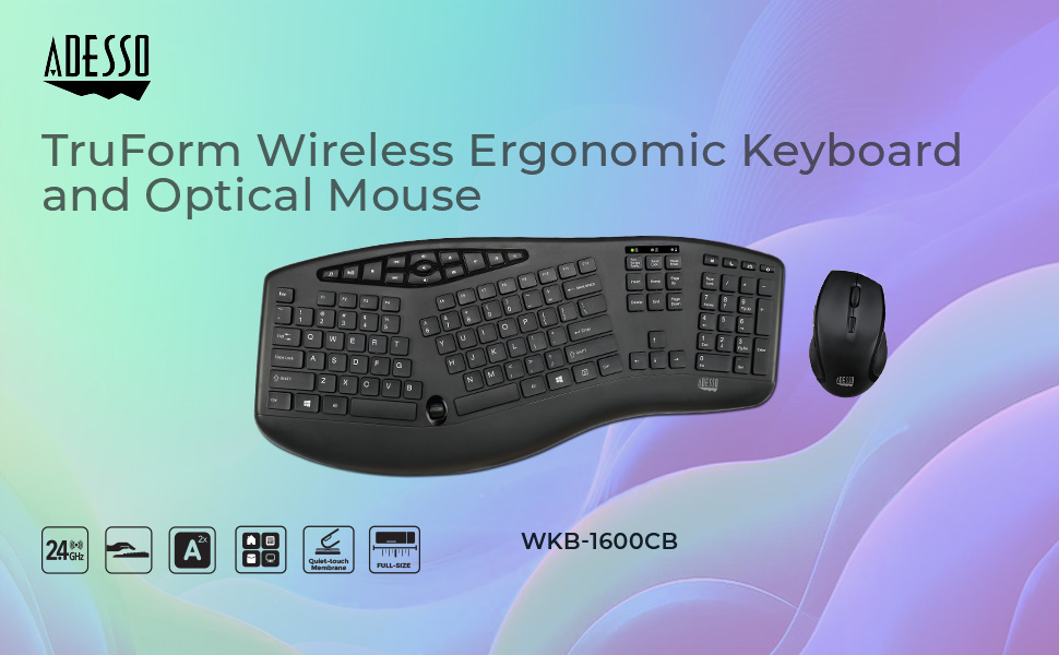 Adesso TruForm Wireless Ergonomic Keyboard And Optical Mouse
