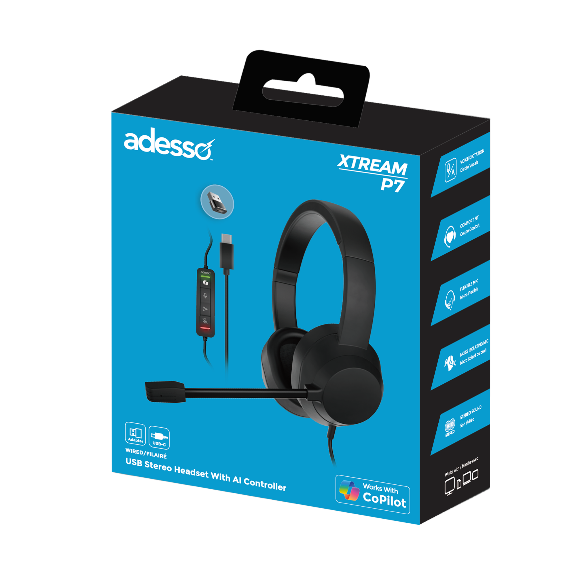 AI Copilot Headset with microphone, Volume +/-, Mute, answer/end call. ( USB-C/USB-A)