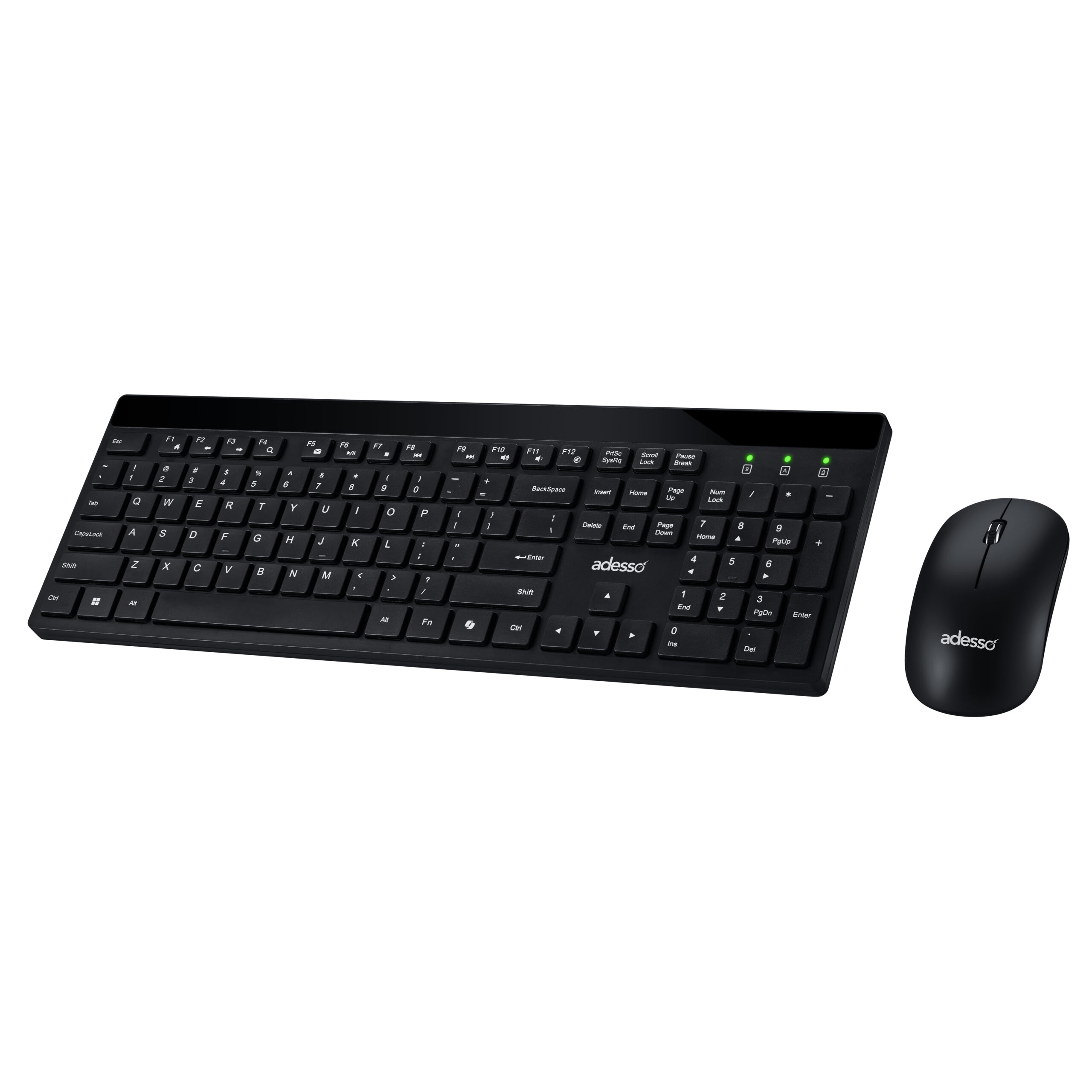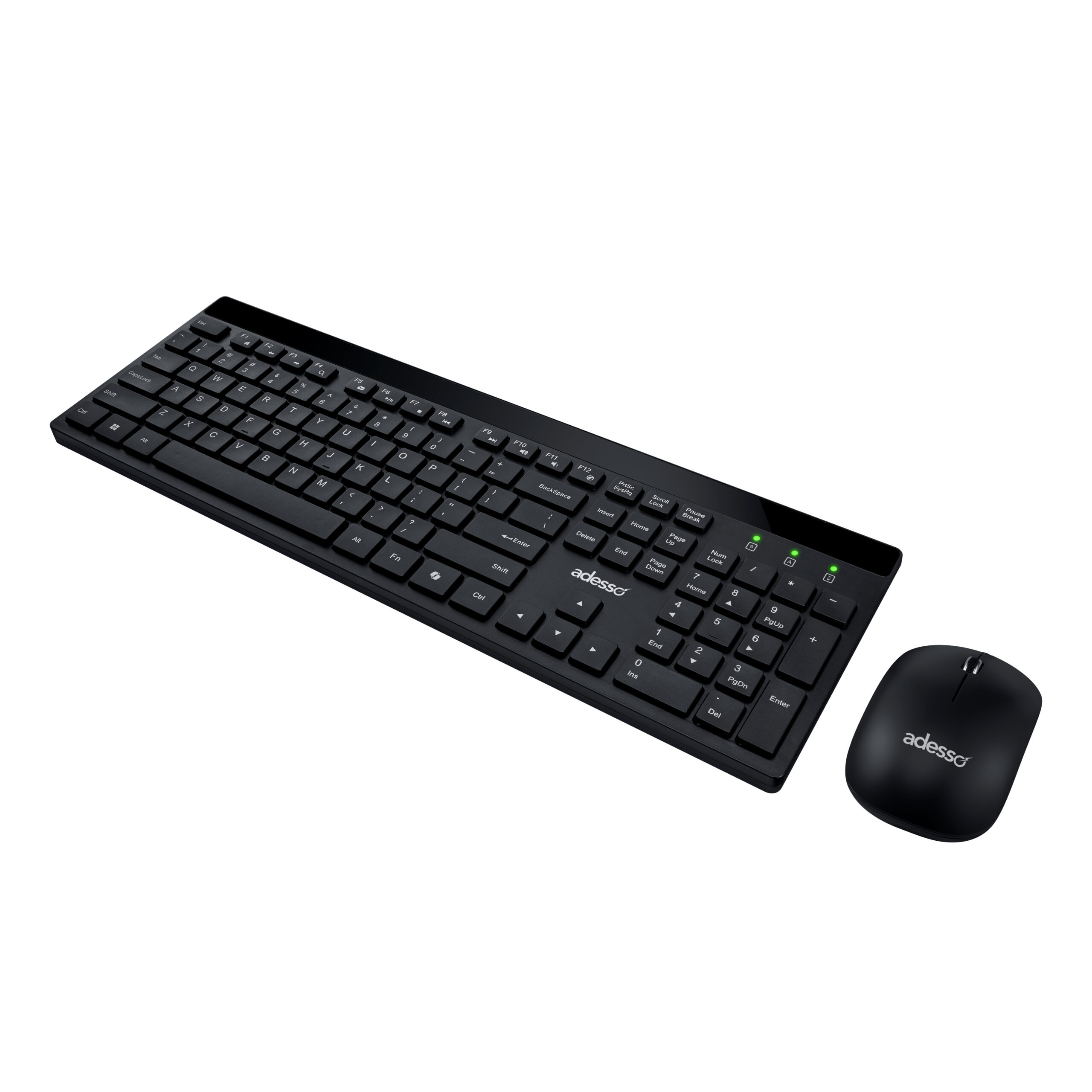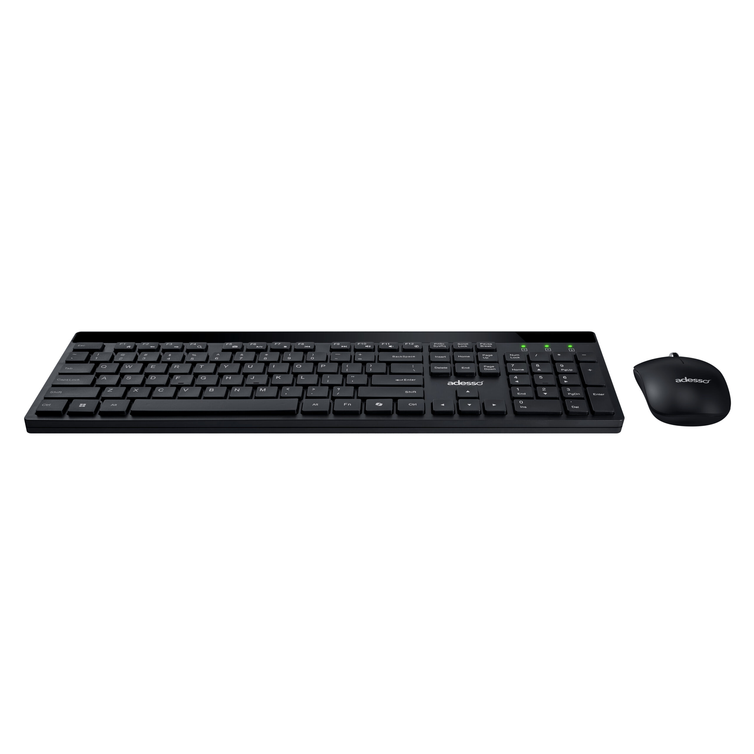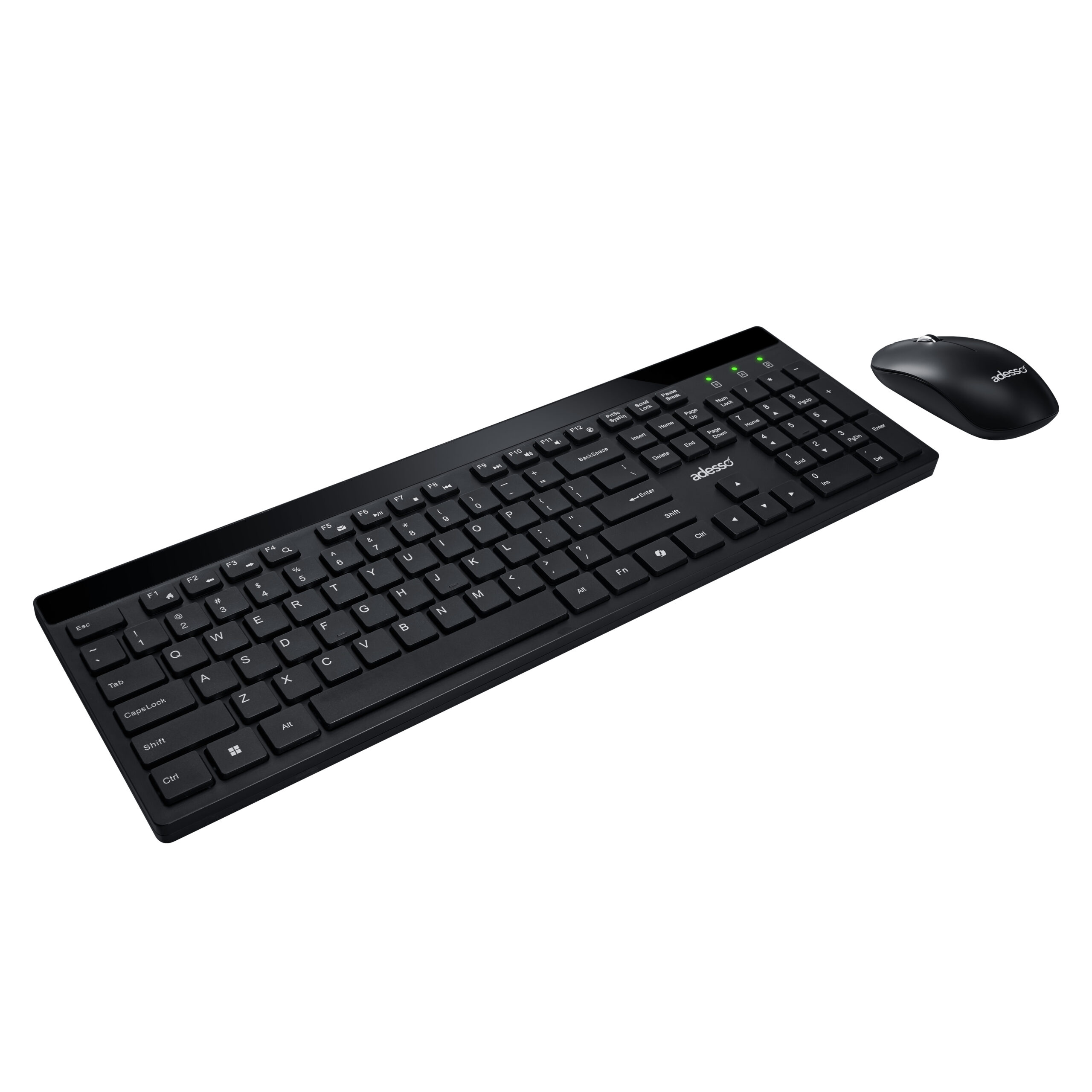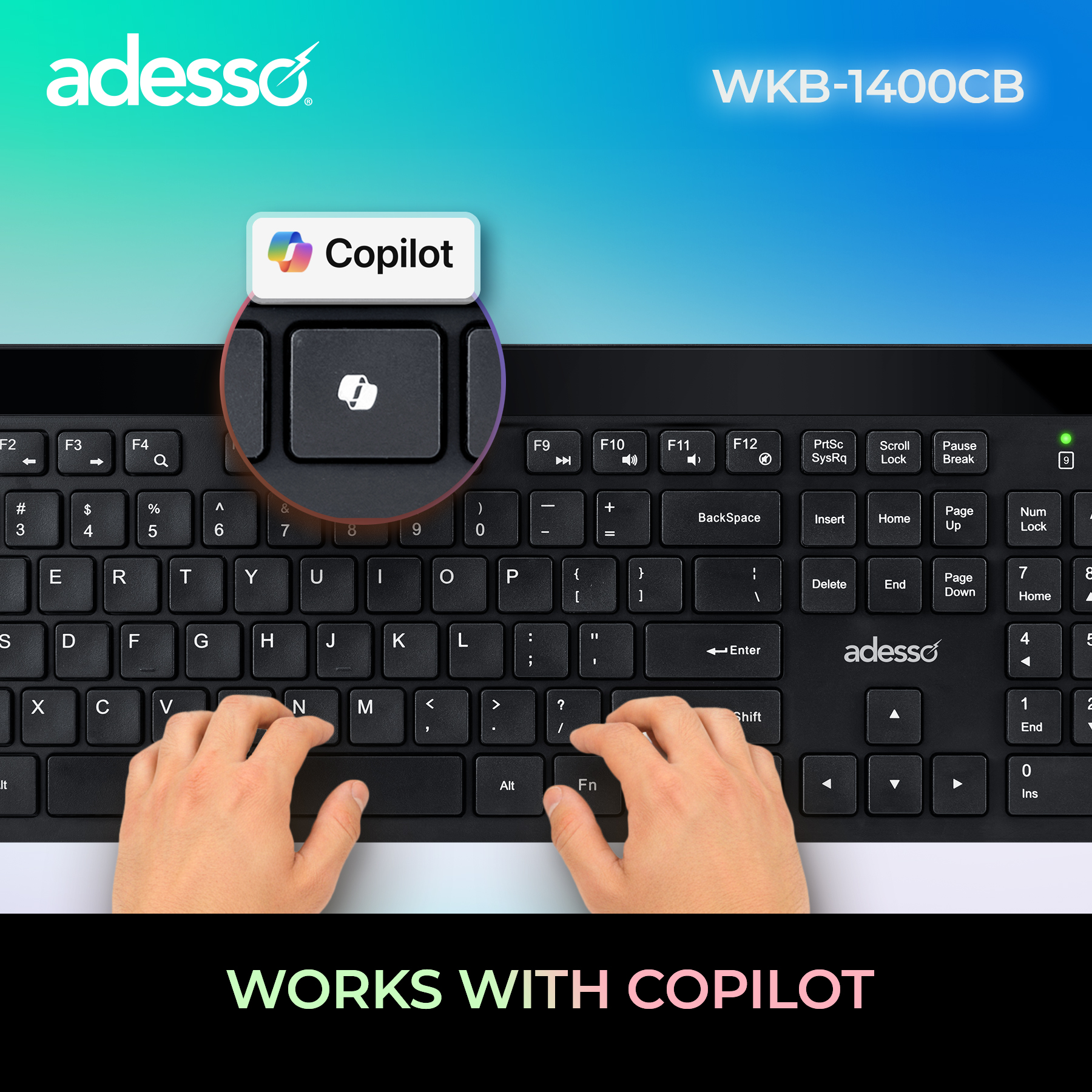 The Adesso WKB-1400CB is a sleek Wireless low-pro le keyboard and mouse combo equipped with quiet switches designed to provide a smooth typing experience. Featuring a CoPilot AI hotkey that instantly gives you access to AI-driven assistance tools.